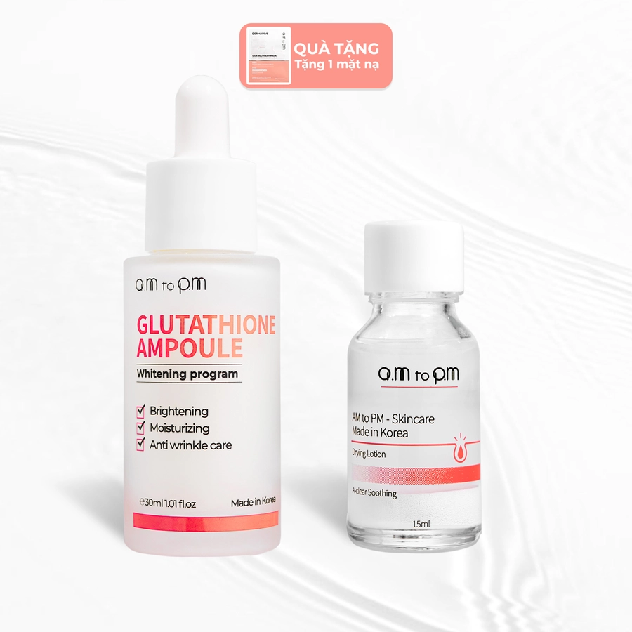 Tên sản phẩm: AM to PM Skin care Drying Lotion A-clear Soothing (Dung Dịch Chấm Mụn, Giảm Sưng Viêm Cấp Tốc AM to PM), Serum Dưỡng Sáng Và Chống Lão Hóa AM to PM GLUTATHIONE AMPOULE